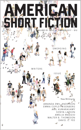 ISSUE 65: The Emerging Writers Issue, featuring fiction by Amanda Emil Anderson, Emma Copley Eisenberg, Akil Kumarasamy, Sonya Larson, Amelia Maggio, Walter B. Thompson, and David E. Yee.